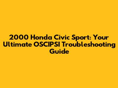 Hey car enthusiasts! Ever found yourself scratching your head over the OSCIPSI system on your awesome 2000 Honda Civic Sport? You're definitely not alone. The OSCIPSI, or Onboard Signal Processing and Integrated System Interface, can sometimes throw a wrench in your driving experience. But don't sweat it! This guide is your friendly companion for everything OSCIPSI-related, designed to help you understand, troubleshoot, and even fix those pesky issues. We'll dive deep, but in a way that’s easy to understand, so you can get back to enjoying the road.