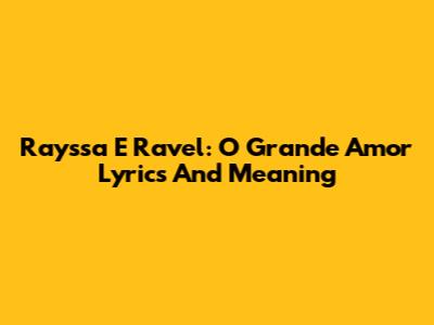 Rayssa E Ravel: "O Grande Amor" Lyrics And Meaning