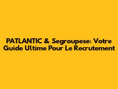 PATLANTIC & Segroupese: Votre Guide Ultime Pour Le Recrutement