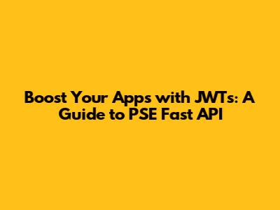 Boost Your Apps With JWTs: A Guide To PSE Fast API