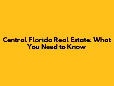 Central Florida Real Estate: What You Need to Know