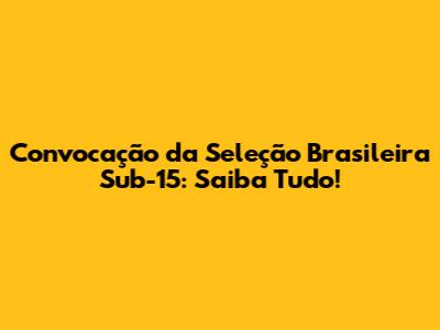 Convocação Da Seleção Brasileira Sub-15: Saiba Tudo!