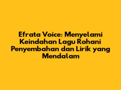 Bagi kalian yang ingin mencari inspirasi dan kekuatan, Efrata Voice adalah pilihan yang tepat. Kalian bisa menemukan lagu-lagu mereka di berbagai platform musik digital, menonton video lirik mereka di YouTube, atau bahkan mengikuti kegiatan-kegiatan pelayanan mereka. Melalui musik mereka, kalian akan merasakan kehadiran Tuhan yang nyata dalam hidup kalian.
