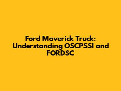 Ford Maverick Truck: OSCPSSI & FORDSC Explained