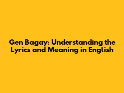Gen Bagay: English Translation And Meaning