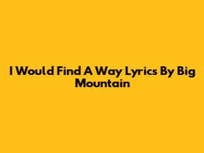 I Would Find A Way Lyrics By Big Mountain