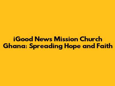 Hey guys! Ever heard of the iGood News Mission Church in Ghana? If not, you're in for a treat. This awesome church is doing some seriously cool things, and I'm stoked to share them with you. We're diving deep into what makes this place tick, from its mission to its impact on the community. Buckle up, because we're about to explore the heart and soul of iGood News Mission Church Ghana.