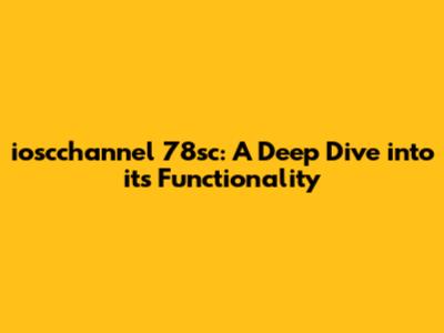 Ioscchannel 78sc: A Deep Dive Into Its Functionality