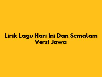 Lirik Lagu 'Hari Ini Dan Semalam' Versi Jawa