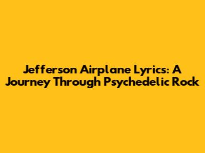 Jefferson Airplane Lyrics: A Journey Through Psychedelic Rock