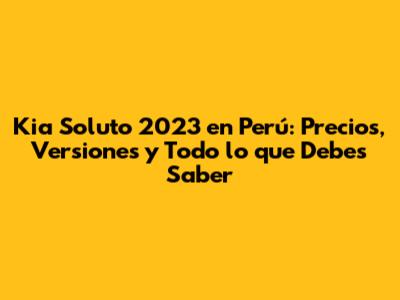 Kia Soluto 2023 En Perú: Precios, Versiones Y Todo Lo Que Debes Saber