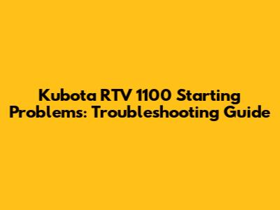 Kubota RTV 1100 Starting Issues? Troubleshoot & Fix