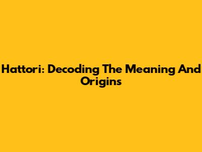 Hattori: Decoding The Meaning And Origins
