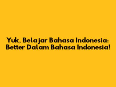 Yuk, Belajar Bahasa Indonesia: "Better" Dalam Bahasa Indonesia!