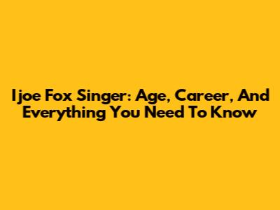Ijoe Fox Singer: Age, Career, And Everything You Need To Know