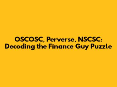 OSCOSC, Perverse, NSCSC: Decoding The Finance Guy Puzzle