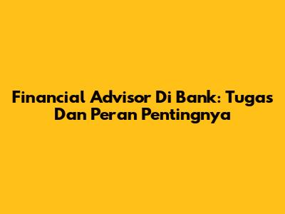 Financial Advisor Di Bank: Tugas Dan Peran Pentingnya