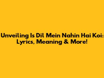 Unveiling 'Is Dil Mein Nahin Hai Koi': Lyrics, Meaning & More!