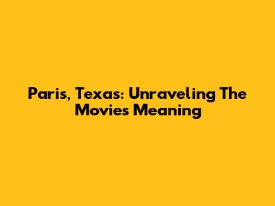 Paris, Texas: Unraveling The Movie's Meaning