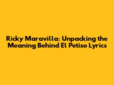 Hey guys! Have you ever found yourself humming a tune and suddenly wondering, “What does this even mean?” Well, let’s dive deep into the iconic song "El Petiso" by the legendary Ricky Maravilla. This song is more than just a catchy beat; it’s a cultural phenomenon! We’re going to explore the lyrics, uncover the hidden meanings, and understand why this song has captured the hearts of so many people. So, buckle up and let's unravel the magic behind "El Petiso!"