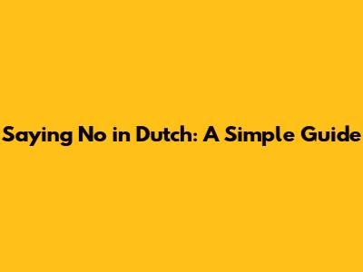 Saying 'No' In Dutch: A Simple Guide