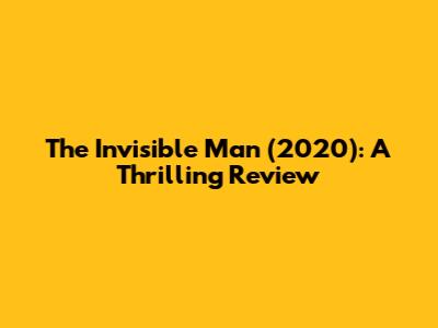 The Invisible Man (2020): A Thrilling Review
