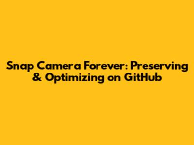 Snap Camera Forever: Preserving & Optimizing On GitHub