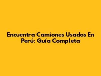 Encuentra Camiones Usados En Perú: Guía Completa