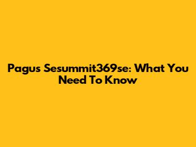 Pagus Sesummit369se: What You Need To Know