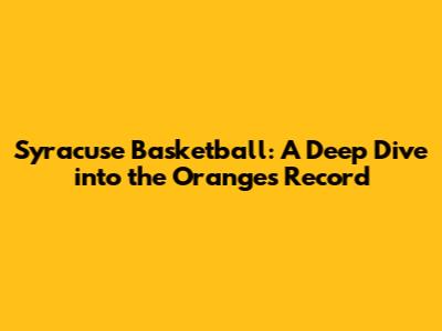 Syracuse Basketball: A Deep Dive Into The Orange's Record