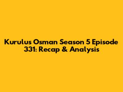 Kurulus Osman Season 5 Episode 331: Recap & Analysis