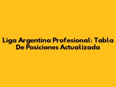 Liga Argentina Profesional: Tabla De Posiciones Actualizada