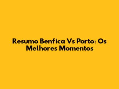 Resumo Benfica Vs Porto: Os Melhores Momentos