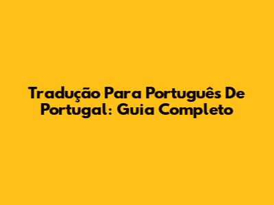 Tradução Para Português De Portugal: Guia Completo