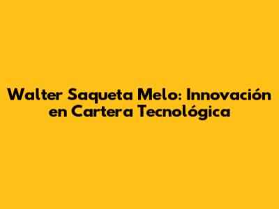 Hey guys! Let's dive into the fascinating world of Walter Saqueta Melo and his innovative approach to cartera tecnológica (technology portfolio). This guy's name is synonymous with forward-thinking investment strategies and a deep understanding of the tech landscape. We're going to break down his methods, exploring how he identifies promising tech ventures and builds portfolios designed for long-term growth. Get ready for a deep dive into the mind of a tech investment guru!